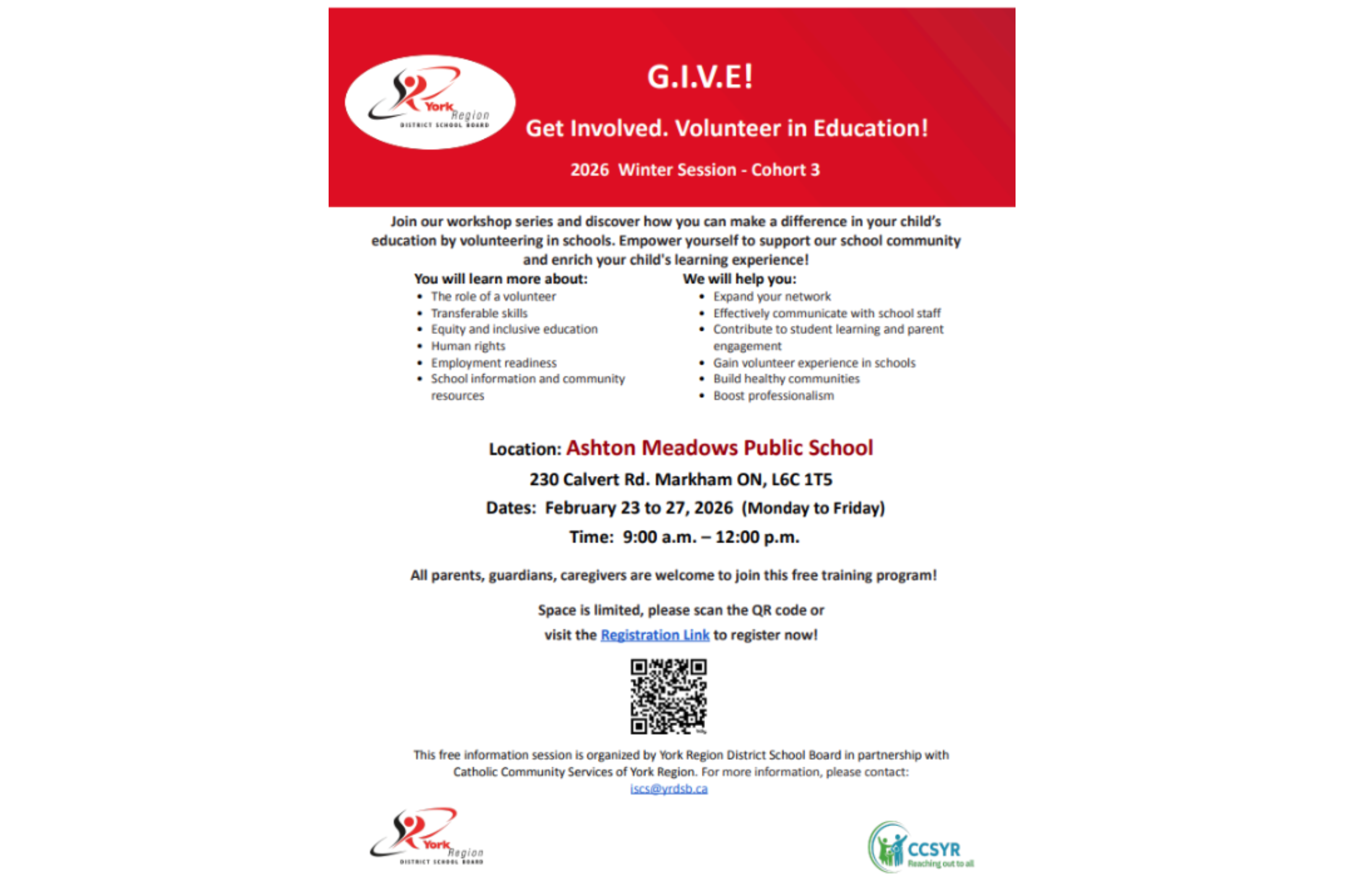 For more information, please contact Inclusive School and Community Services (ISCS) at iscs@yrdsb.ca.